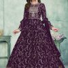 Wine Abaya style georgette embroidered anarkali suit, made with resham work and patch border with touch up patterns on the yoke and lower part of the kameez.