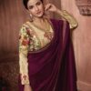 Wine Embroidered Festival Saree, crafted with foliage patterns on the border of the saree and stone work on the saree. Comes with matching blouse.