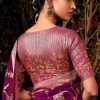 Wine embroidered silk wedding saree, designed with sequin stone and thread work enhanced by fancy tassels. The saree comes with a matching blouse.