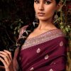 Wine embroidered silk wedding saree, designed with sequin stone and thread work enhanced by fancy tassels. The saree comes with a matching blouse.