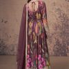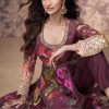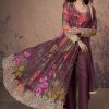 Wine floral print side slit anarkali suit, made with sequence and embroidered work. Comes with georgette top, bottom and dupatta.
