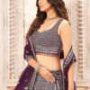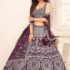 Wine net heavy designer bridal lehenga choli made with handwork thread and sequins. Comes with matching choli and dupatta.