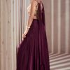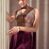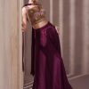 Wine palazzo suit with crop top & dupatta, made with thread zari, and sequin work. Comes with matching top, bottom and dupatta.