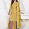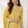 Yellow chinon long choli lehenga suit made with thread zari sequin work. Comes with matching top, skirt and dupatta.