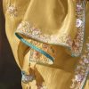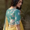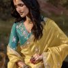 Yellow embroidered wedding saree, embellished with sequin stone and thread work enhanced by fancy tassels. The saree comes with a matching contrast blouse.
