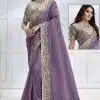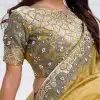 Yellow crush silk designer saree crafted with sequin and cord embroidery work. The saree comes with a unstitched matching net blouse.