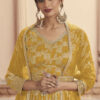 Yellow embroidered floor length anarkali suit crafted with thread and sequins work. Comes with Top, bottom & dupatta.