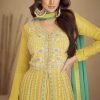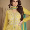 Yellow embroidered palazzo suit made with thread zari, and sequin work. Comes with matching top, bottom and dupatta.