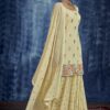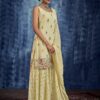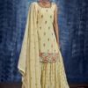 Yellow embroidered sharara suit crafted with thread and sequins work. Comes with Top, bottom & dupatta.