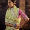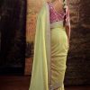 Yellow fancy fabric embroidered wedding saree designed with thread and intricate border work. The saree comes with a matching blouse.