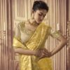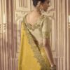 Yellow fancy silk wedding party wear saree made with intricate embroidery border work. The saree comes with a matching blouse.