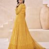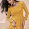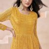 Yellow georgette floor length anarkali gown, made with sequence and embroidered work. Comes with georgette top and dupatta. Does not come with trouser.