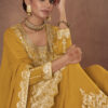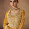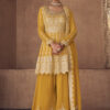 Yellow georgette sharara suit made with thread zari sequin work. Comes with matching top, bottom and chinon dupatta.