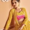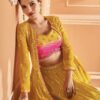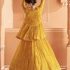 Yellow jacket style Lehenga choli, made with thread zari sequin work. Comes with matching top, skirt and jacket.