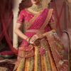 Yellow & pink banarasi silk heavy embroidered bridal lehenga choli, made with thread and sequin work. Comes with matching lehenga, choli and dupatta.