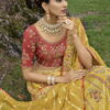 Yellow silk embroidered bridal lehenga choli, designed with sequin, zari work, hand embroidered paired with matching embroidered blouse and silk dupatta.