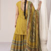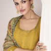 Yellow silk embroidered traditional sharara suit made with thread sequins work. Comes with matching silk top, georgette bottom and dupatta.