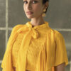 Yellow tie dye printed lehenga choli made with thread sequin and patch border work. Comes with matching top and lehenga. This does not come with a dupatta.